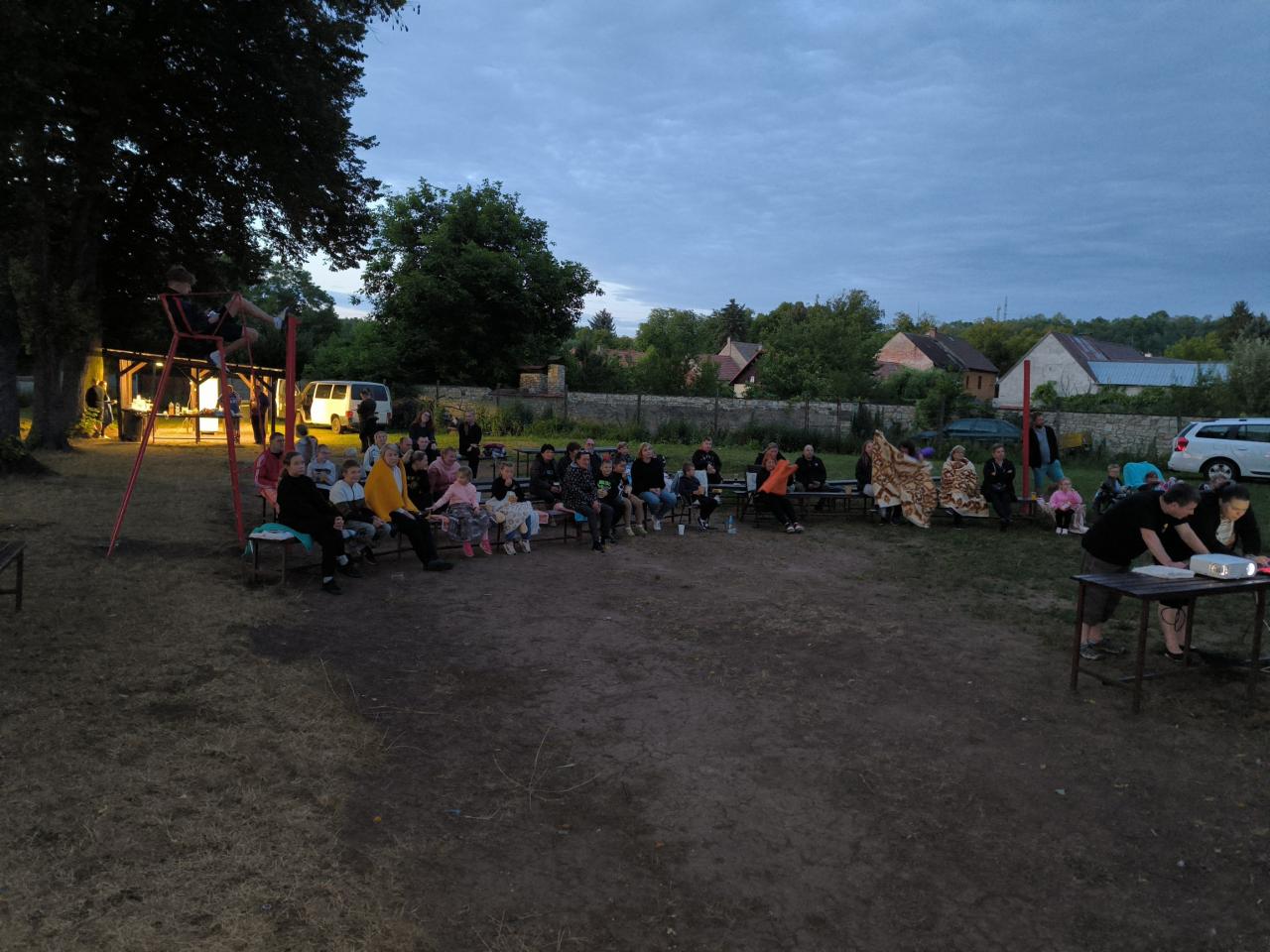 Na druhý pokus se nám počasí přálo a na sokolském hřišti jsme promítali film Gump - jsme dvojka